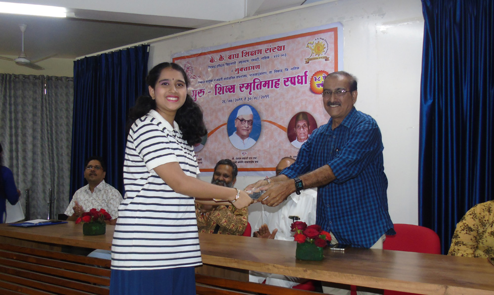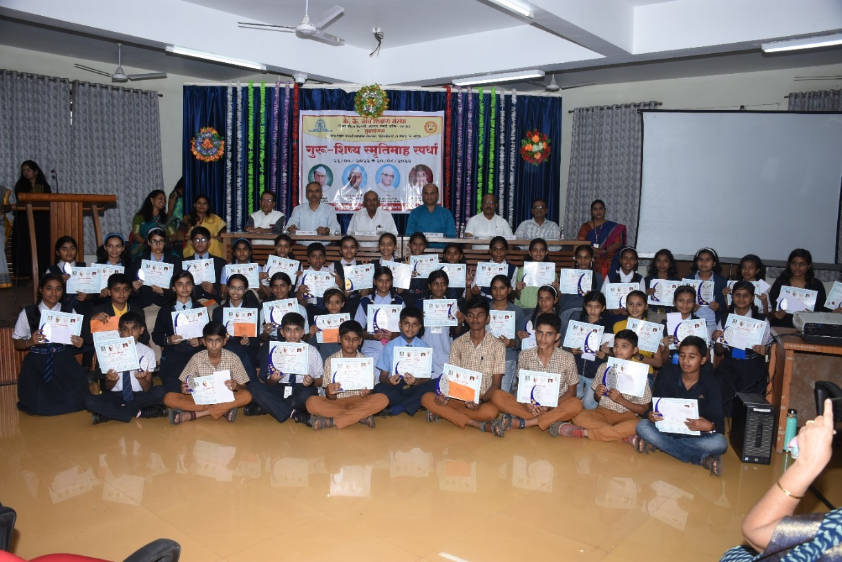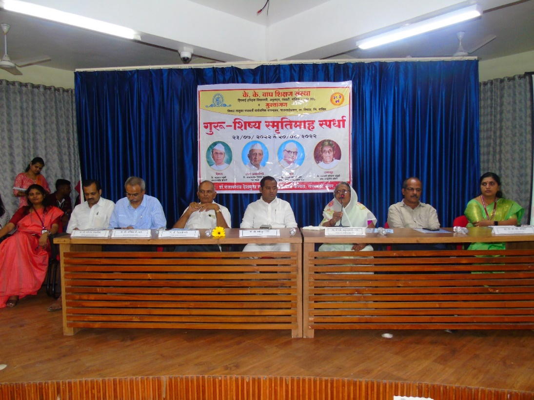 In order to pay tribute to the late Deoram Sayaji Wagh alias Padma Shri Karmaveer Kakasaheb Wagh, the stalwart of the cooperative movement Madhavrao Boraste & Philanthropist late Ratansey Haridas Udeshi alias Kakushet Udeshi is being celebrated as Guru Shishya Smruthi Abhiwadan Spardha since last 39 years. These competitions are organized to enhance the hidden skills of the students. The participants are from both rural and urban areas of Maharashtra.